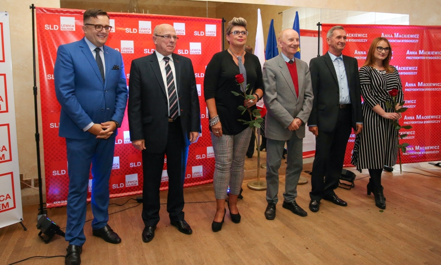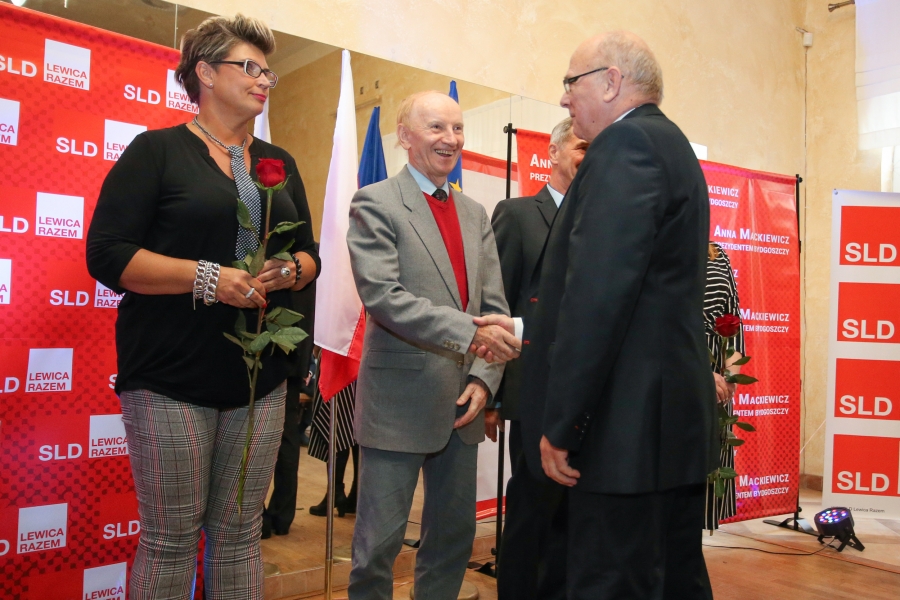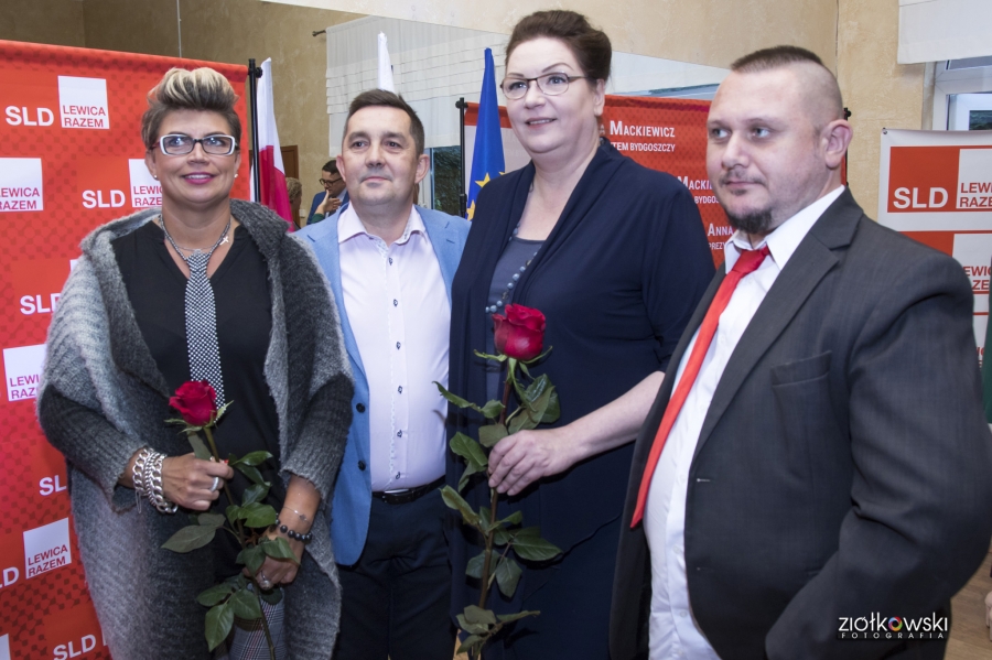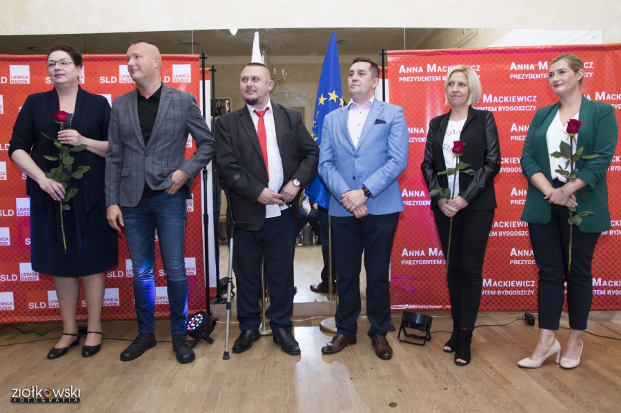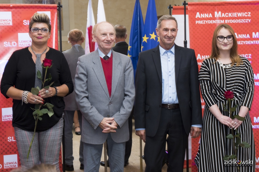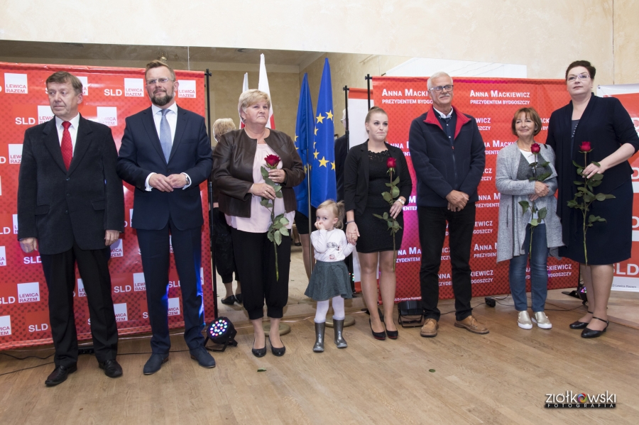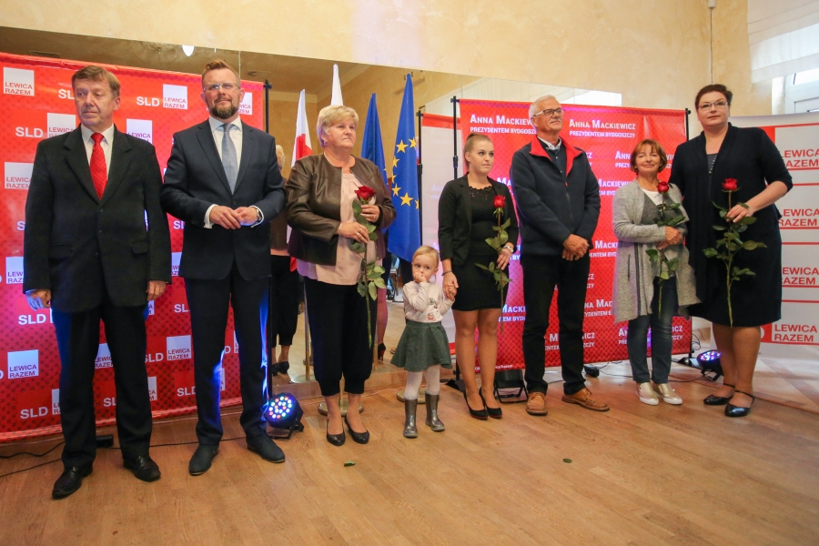 24 września 2018 r. odbyła się inauguracja kampanii samorządowej KKW SLD Lewica Razem w Bydgoszczy. Anna Mackiewicz, która kandyduje na urząd Prezydenta Bydgoszczy, zaprezentowała główne punkty swojego programu. Wydarzenie poprowadził duet Ania Niewiadomska i Tomasz Puławski, którzy przedstawili kandydatki i kandydatów do Rady Miasta Bydgoszczy oraz Sejmiku Województwa Kujawsko-Pomorskiego. Lider listy do Sejmiku Jan Szopiński dokładnie wyłuszczył, dlaczego warto głosować na listę KKW SLD Lewica Razem, a szef patii w mieście i województwie Ireneusz Nitkiewicz przedstawił ramy programu wyborczego lewicy. Na listach znalazły się osoby reprezentujące różne środowiska: społecznicy, szefowie rad osiedli, pracodawcy, wykładowcy akademiccy, przedsiębiorcy, osoby walczące o prawa osób niepełnosprawnych, artyści, nauczyciele, studenci i uczniowie. Fot. Piotr Ziółkowski